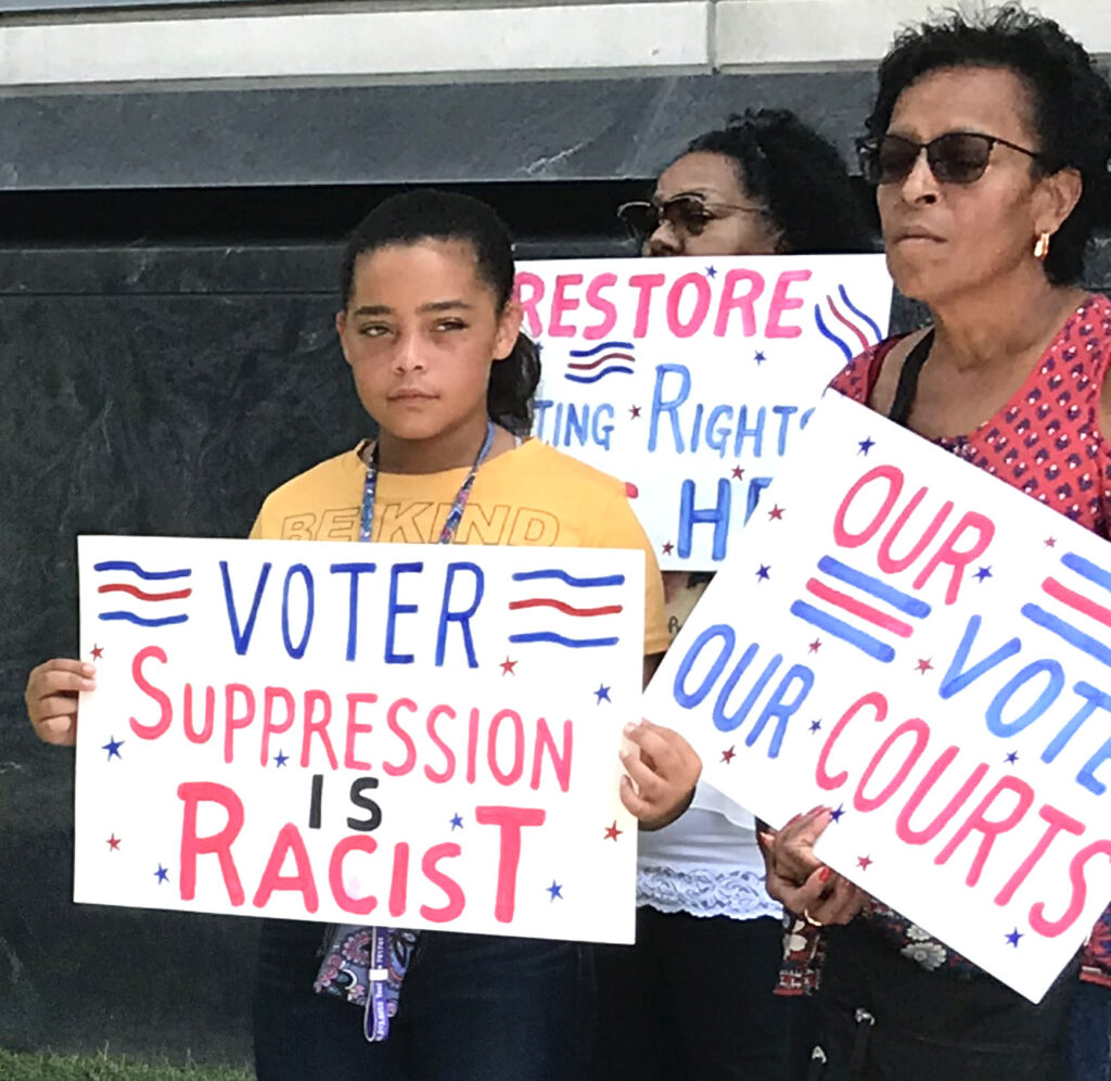 So, we gathered on the anniversary of the VRA to join with advocates nationwide in demanding that Congress stop the rise in voter suppression and move to restore the rights the Act was supposed to guarantee by passing HR-4, the Voting Rights Advancement Act.