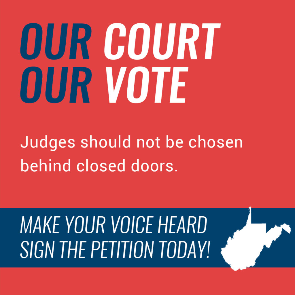 WV Citizens for Clean Elections (WVCCE) is urging West Virginians to sign on to the groups’ Our Court, Our Vote petition, which is addressed to Governor Jim Justice and members of the WV Legislature, and which demands a prompt and transparent special election for any open seats on the Supreme Court.